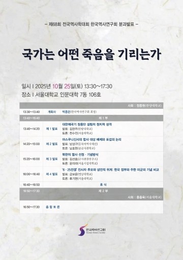 [제68회 전국역사학대회] 한국역사연구회 분과발표 <국가는 어떤 죽음을 기리는가> (2025. 10. 25)