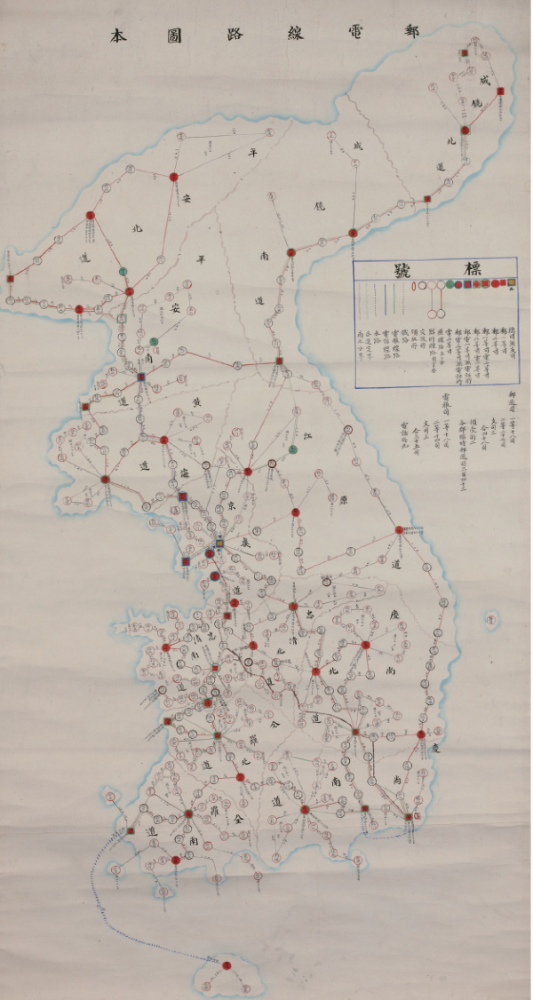 그러므로 우체국의 역사를 이해하기 위해서는 위와 같은 선로 지도가 중요할 수 밖에 없다. 위 지도는 대한제국 시기 우체사와 전보사를 표시한 지도이다. 우체사의 경우에는 배달 경로가 중요했으며, 전보사의 경우에는 전신의 선로가 중요했다. 우리 식민지 시기에 거의 매년 이러한 통신선로가 제작된 것은 우편과 전신 서비스를 구체적으로 확인할 수 있기 때문이다. 식민지 시기에는 이를 ‘체신지도’라는 이름으로 제작하였다. 여기에는 해당 지역까지의 거리와 배송 경로, 배달 횟수 등을 표기하였다. 현재 서울대학교 중앙도서관에는 1915년판, 1927년판, 1928년판 체신지도를 볼 수 있다. 이들 지도를 통해 자신이 사는 지역에 얼마나 빠른 우편 서비스를 받을 수 있는지, 전신은 가능한지, 전화는 가능한지를 알 수 있게 된다.